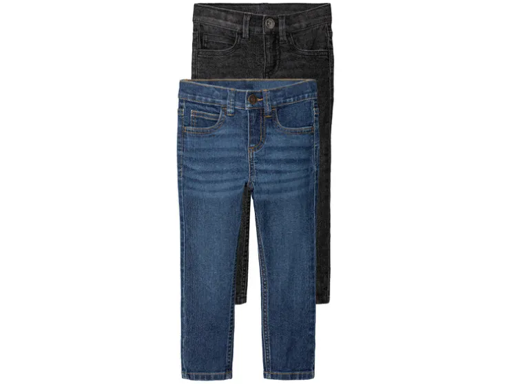 - Blauw: 70 % katoen, 28 % polyester, 2 % elastaan