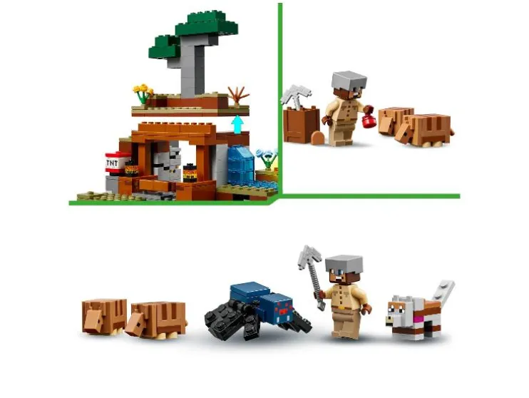 Bouw de LEGO® Minecraft® Gordeldier Expeditie en beleef spannende avonturen. Ontplof TNT, vind kostbaar erts en speel met coole figuren uit het spel.