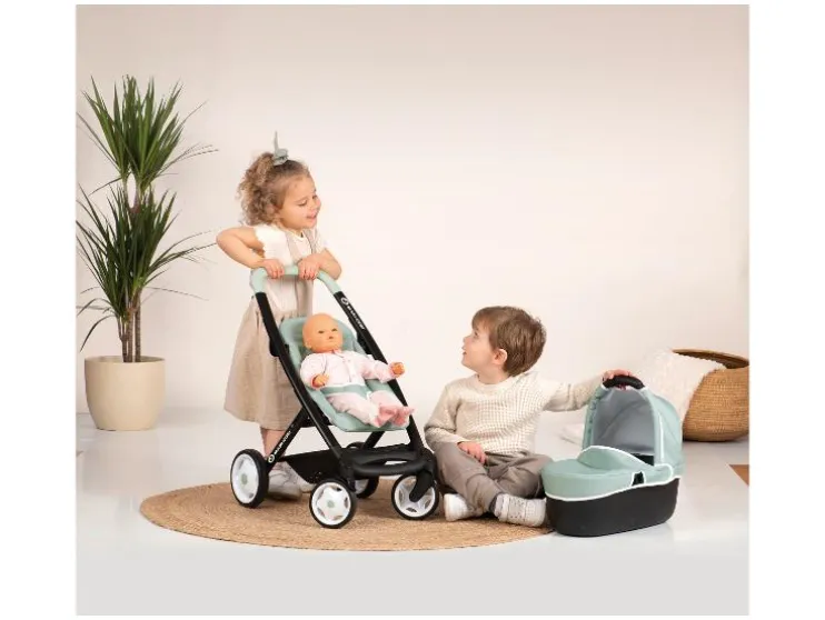 Comfortabel zitten of liggen, of je pop gewoon meenemen in de draagmand? Met deze 3-in-1 multifunctionele poppenwagen in het trendy Maxi-Cosi design is alles mogelijk! Want de moderne poppenwagen is dankzij de verwisselbare zitting in een handomdraai om te toveren tot een praktische sportpoppenwagen. Is je pop moe, dan kan je kleine schat comfortabel in de poppenwagen slapen. Met een paar handgrepen kan het bovenste deel worden verwijderd en kun je je kleine schat in de praktische draagmand overal mee naartoe nemen. Voor spannende ontdekkingstochten wordt de poppenwagen omgebouwd tot een buggy waarin comfortabel gezeten kan worden. De bekleding van de poppenwagen is gemaakt van robuust kunststofweefsel. Voor de reiniging kunnen deze prima vochtig worden afgeveegd. Voor poppen tot 42 cm.