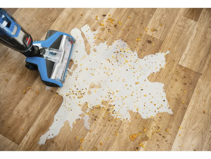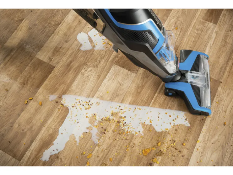 - Zuigt, veegt en droogt vloeren in één werkgang