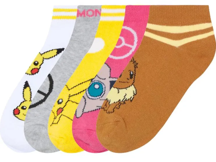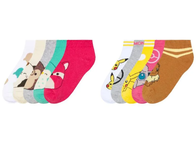 | Materiaal: | Pokémon: 68 % katoen, 30 % polyamide, 2 % elastaan (LYCRA®); Grijs: 73 % katoen, 25 % polyamide, 2 % elastaan (LYCRA®) Squishmallows: 69 % katoen, 29 % polyamide, 2 % elastaan (LYCRA®); Grijs: 63 % katoen, 35 % polyamide, 2 % elastaan (LYCRA®) |