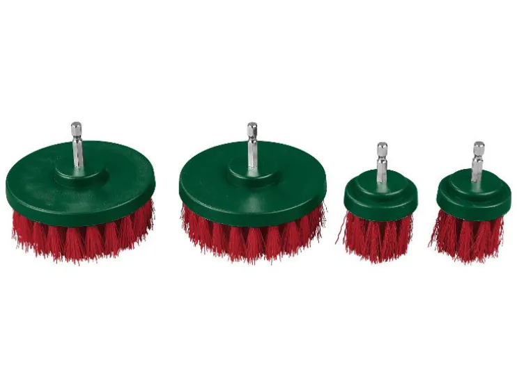 - Inhoud: 2 kleine platte borstels (Ø ca. 4,8 cm) en 2 grote platte borstels (Ø ca. 10 cm)