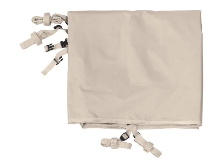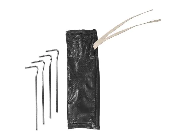 - Meegeleverde accessoires: 4 spanlijnen (voorgemonteerd, lengte variabel), 4 haringen, 3 bevestigingsriemen met kliksluiting