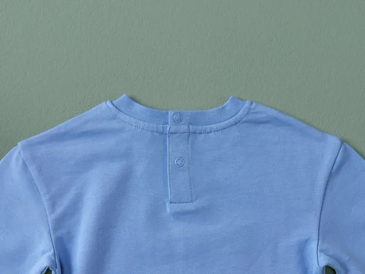 - Elastische ribboorden aan de halslijn, mouwen en tailleband