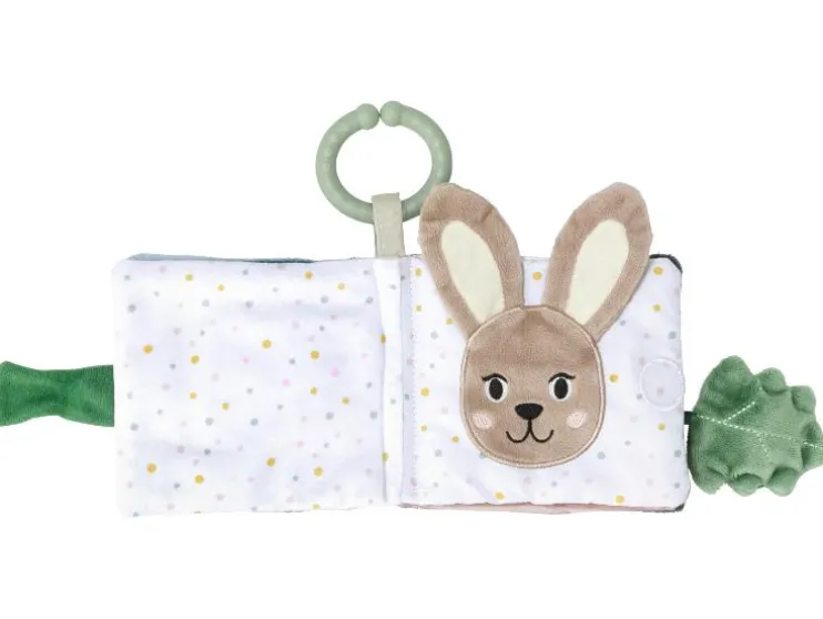 - Zacht boekje met rammelaar, spiegel, knisperfolie en klittenbandfunctie