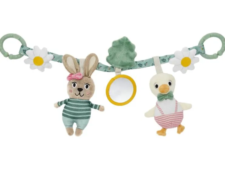 - Kinderwagenketting met rammelaar, spiegel, knisperfolie en piepelement