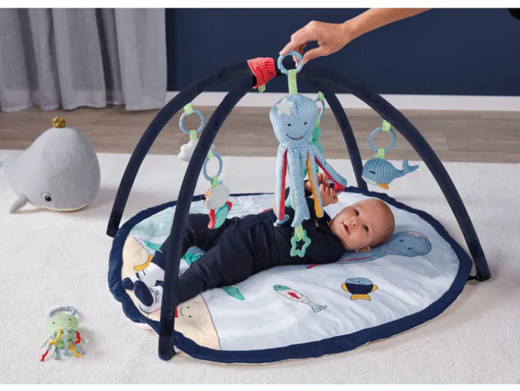 - Het speelkleed stimuleert tastzin, gehoor en hand-oog coördinatie