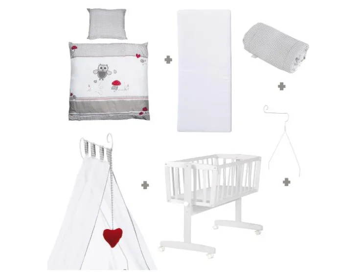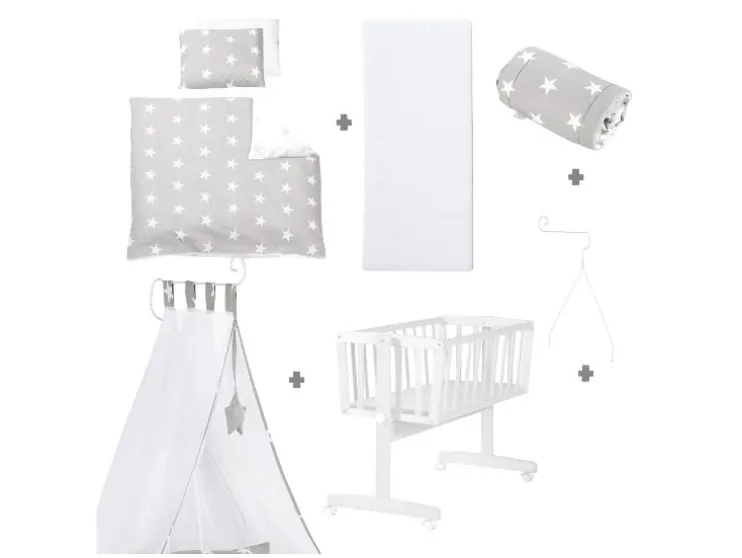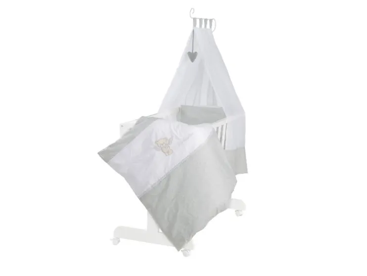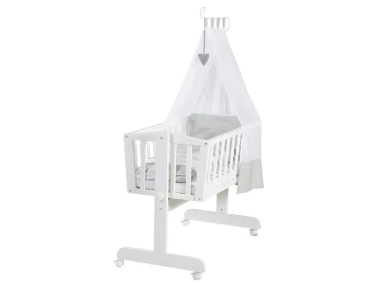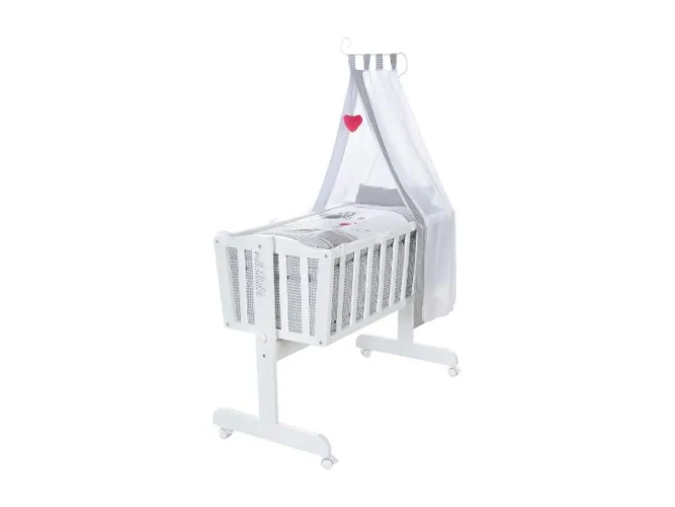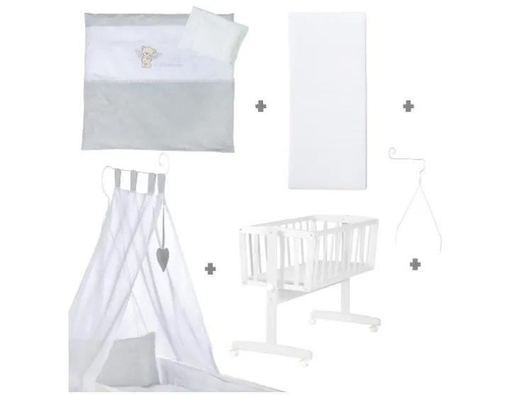 - Complete set bestaande uit een wieg, matras, kussen, kinderdeken, hemel, hemelstand en hoofdbeschermer