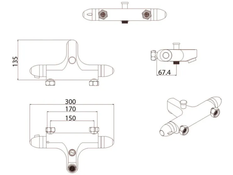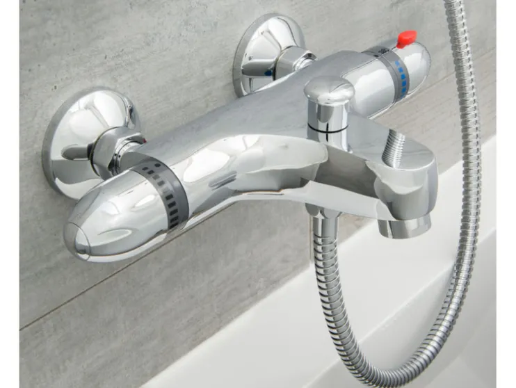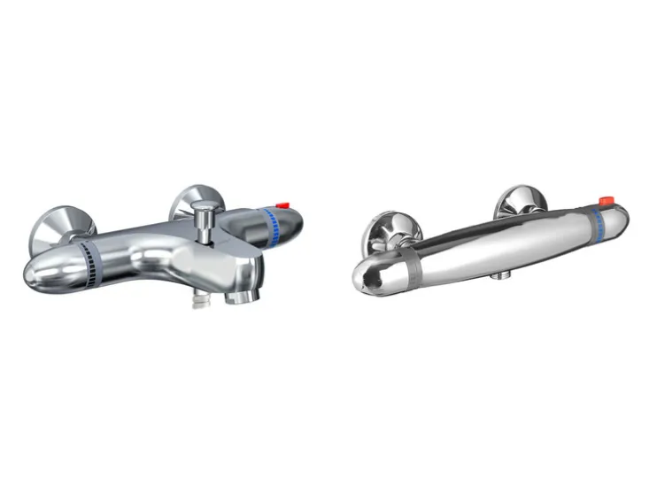 - Badkraan: 1x SUPRA badmengkraan met thermostaat, 1x montagemateriaal incl. 2 x S-aansluiting en 2 x muurrozet, 1x montagebeschrijving