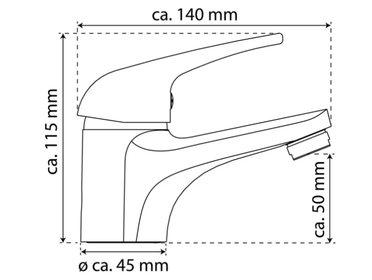- Wastafelkraan: ca. B 4,7 x H 11,5 x D 142 cm