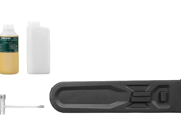 | Accessoires | Beschermhoes, combi-gereedschap, brandstofmengfles, 500 ml Bio-zaagkettingolie „Made in Germany“ |