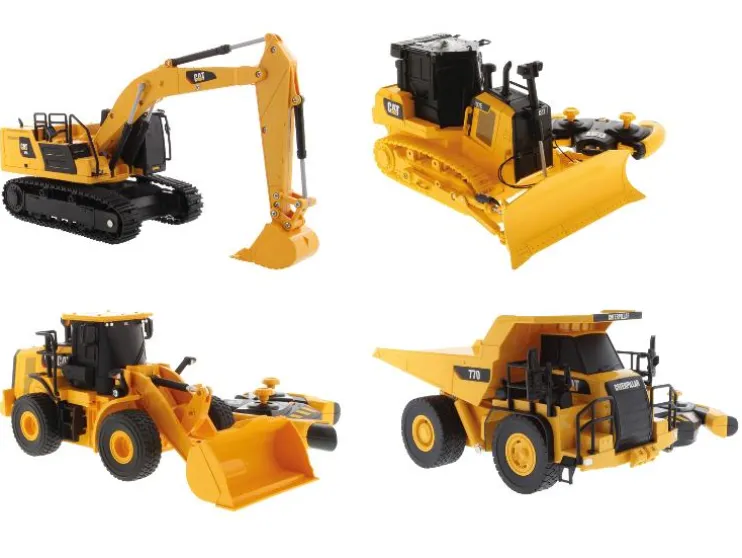 | Afmetingen: | Graafmachine: ca. L 29,5 x B 9 x H 20,5 cm Bulldozer: ca. L 24 x B 15,5 x H 12 cm Wiellader: ca. L 25,5 x B 9 x H 10,5 cm Dumptruck: ca. L 26,5 x B 14,5 x H 10,5 cm |