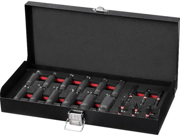 | Inhoud: | 12x zeskant-dopsleutel, 2x dopsleuteladapter (buitenzeskant naar buitenvierkant), 6x bits, 1x bithouder (buitenzeskant naar binnenvierkant) |
