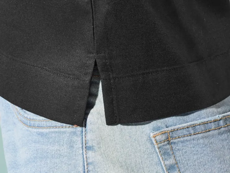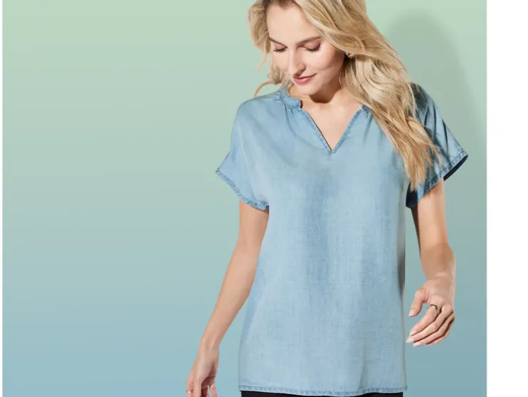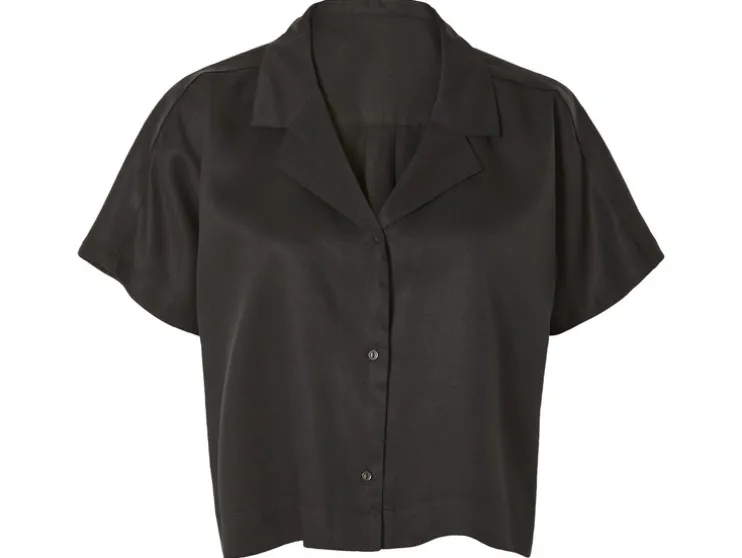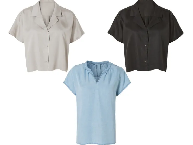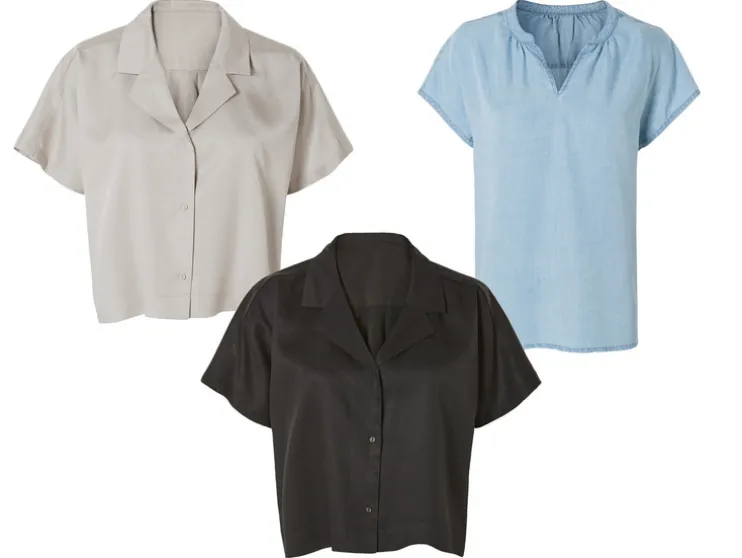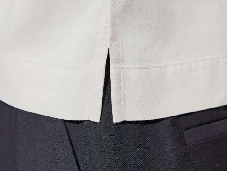 - Modieuze reverskraag, doorlopende knoopsluiting en halflange mouwen