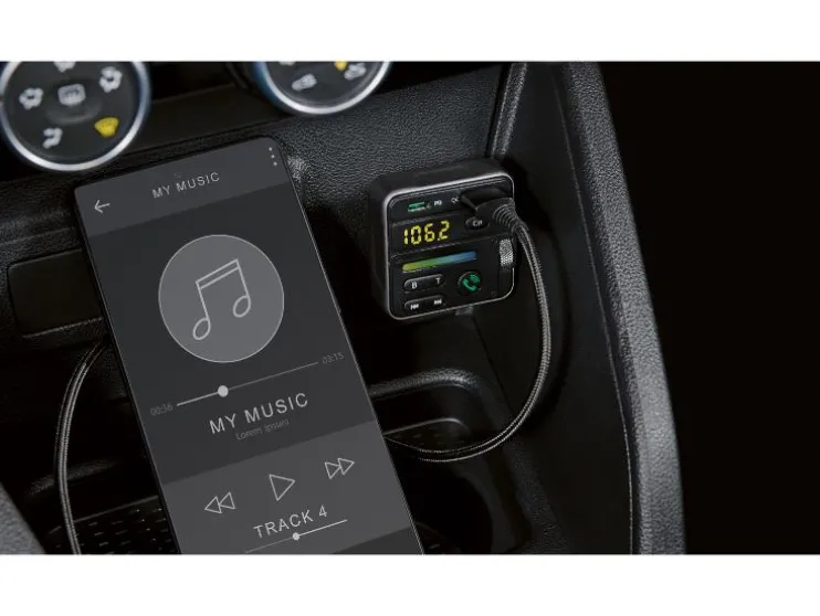 Luister naar je favoriete muziek en laad je apparaten onderweg op. Deze Bluetooth FM-transmitter maakt autorijden comfortabel en veilig.