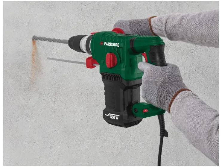 | Toebehoren: | 1x Puntbeitel (SDS-Plus, lengte: 250 mm), 1x Vlakke beitel (SDS-Plus lengte: 250 mm), 5x Boren (SDS-Plus, Ø 5/6/8/10/12 mm), 1x Sleutel voor behuizingsafdekking, 1x Smeervet, 1x Opbergkoffer, 1x Gebruiksaanwijzing, 1x Doek, 1x Hulphandgreep, 1x Diepteaanslag |