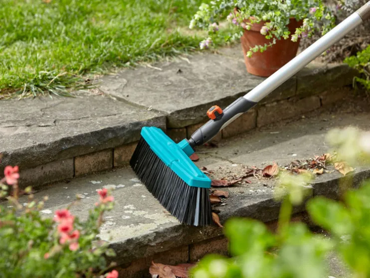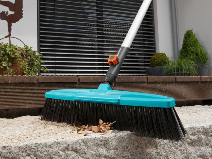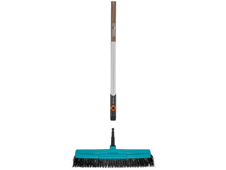 Met de GARDENA combisysteem straatbezem ben je ideaal uitgerust voor jouw paden rond het huis. Dankzij een werkbreedte van 45 cm en een robuuste behuizing van hoogwaardig kunststof kun je de straatbezem op vele manieren gebruiken. Met de hoogwaardige en flexibele polypropyleen borstelharen krijg je een perfect reinigingsresultaat. Dankzij een mix van harde en zachte borstelharen kan je zelfs het fijnste vuil, zoals zand en stof, optimaal verwijderen. Vertrapt vuil en vochtige bladeren kunt zonder grote inspanning met de geïntegreerde schraaprand verwijderen.