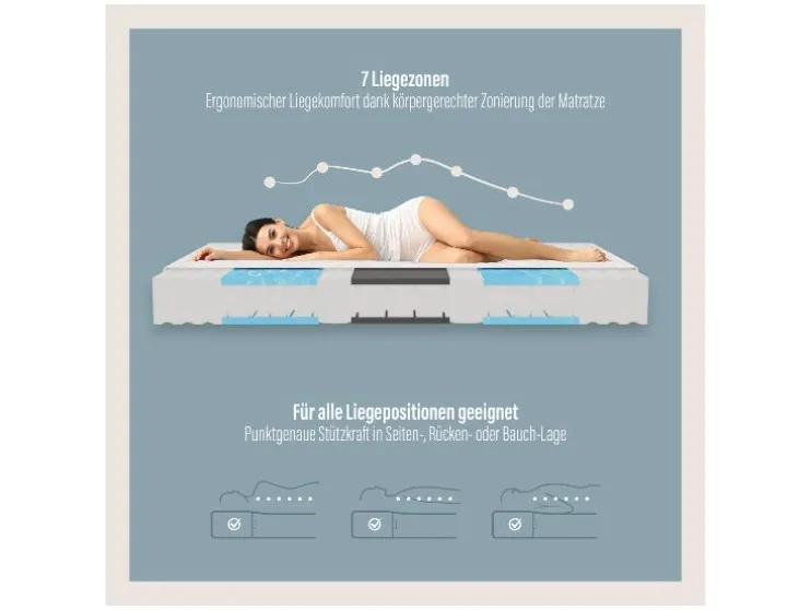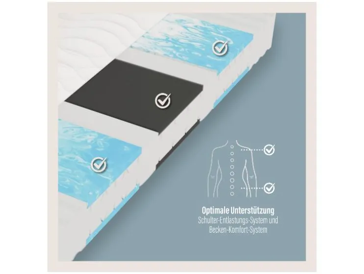 - Details/kenmerken 21 cm hoge comfortkern met 7 ligzones, met zeer flexibele gel-foam inserts aan beide zijden voor een zachte schouderzone en een extra bekkenondersteuningssysteem