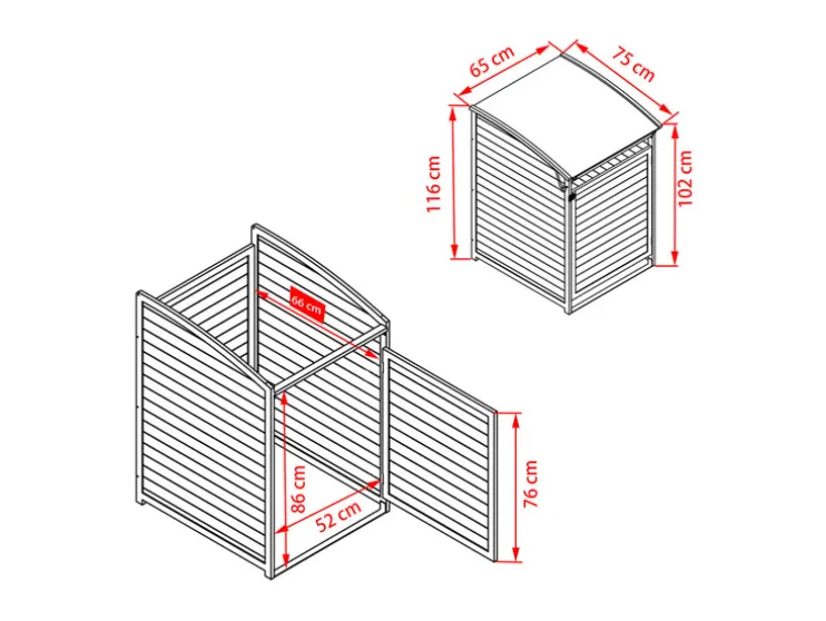 - De afmetingen zijn speciaal ontworpen voor containers met een inhoud van 120 liter
