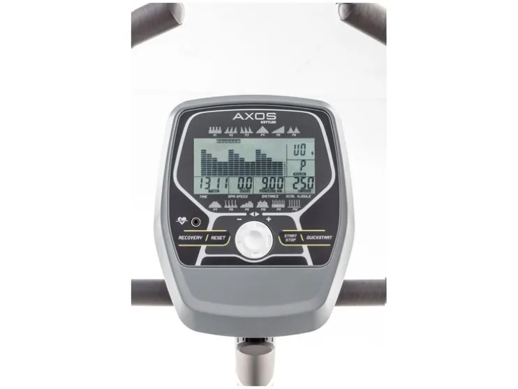 - Weergave van: snelheid, calorieën, pols, kamertemperatuur, RPM, afstand, trainingstijd