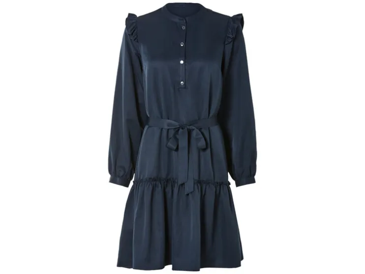 - Decoratieve ruches aan schouders en zoomafsluiting