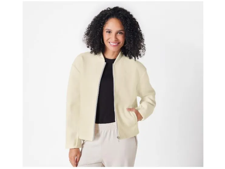 - Met geribbelde ronde hals en doorlopende ritssluiting