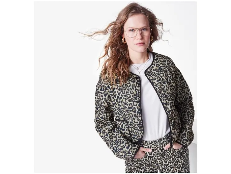 - Dit jasje heeft een modieuze luipaardprint en is gevoerd