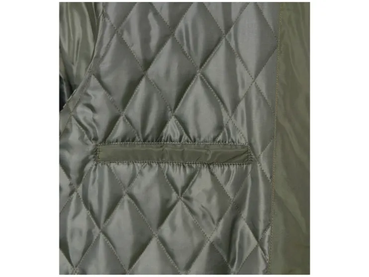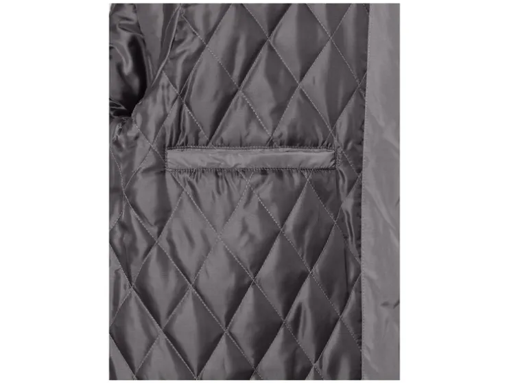 | Detail: | Voering met modieus quiltwerk, binnenzak en zijdelingse steekzakken met drukknoop, boorden aan mouw- en zoomafsluiting |