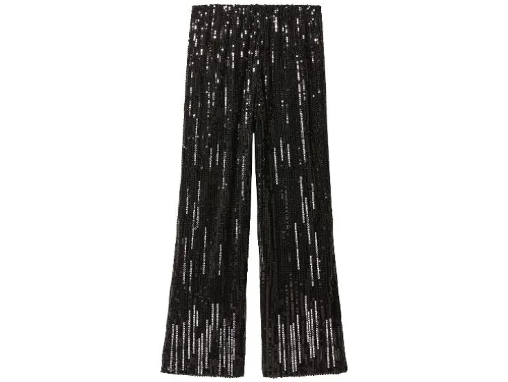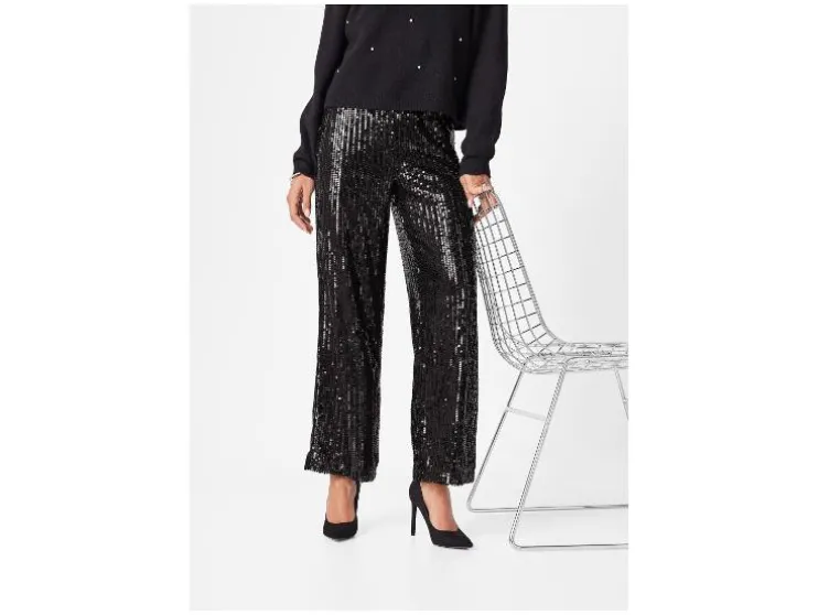Deze damesbroek combineert comfort met een glamoureuze look. Perfect voor feestjes of een opvallende outfit.