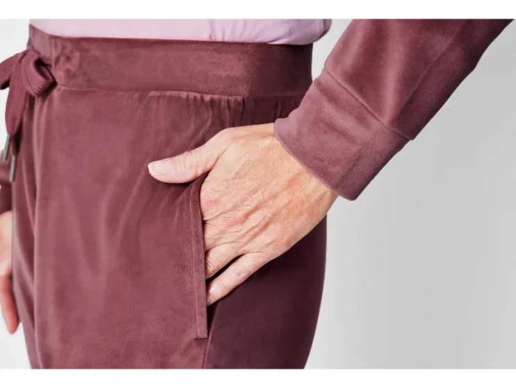 | Detail: | van knuffelig zachte nicky-kwaliteit, opgestikte kangoeroezak, broek met zijdelingse steekzakken, elastische tailleband en bindceintuur |