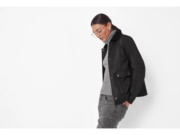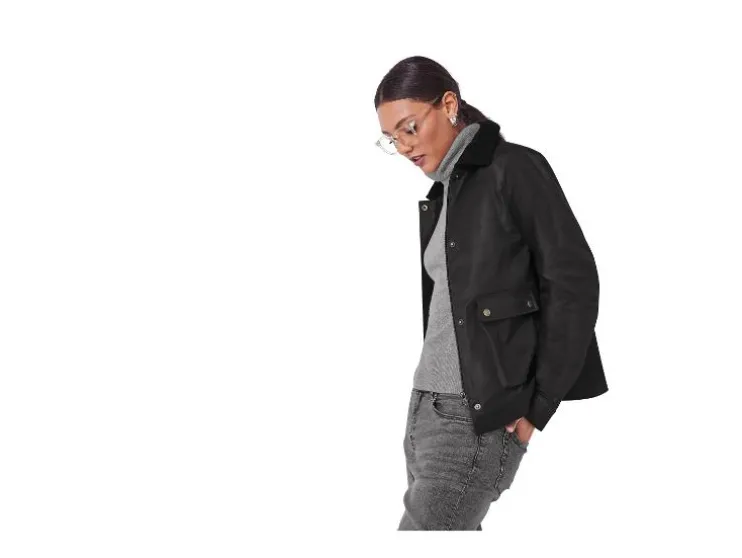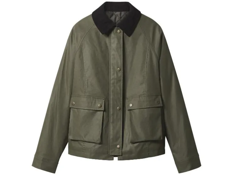 - Deze jas heeft een corduroy Kentkraag en 2 grote, opgestikte zakken