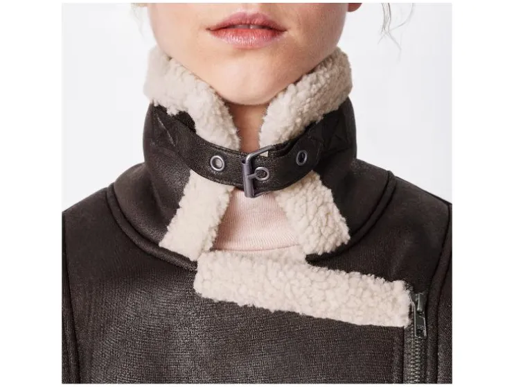 | Detail: | leerlook, gevoerd met warm imitatiebont, asymmetrische rits, zijzakken |