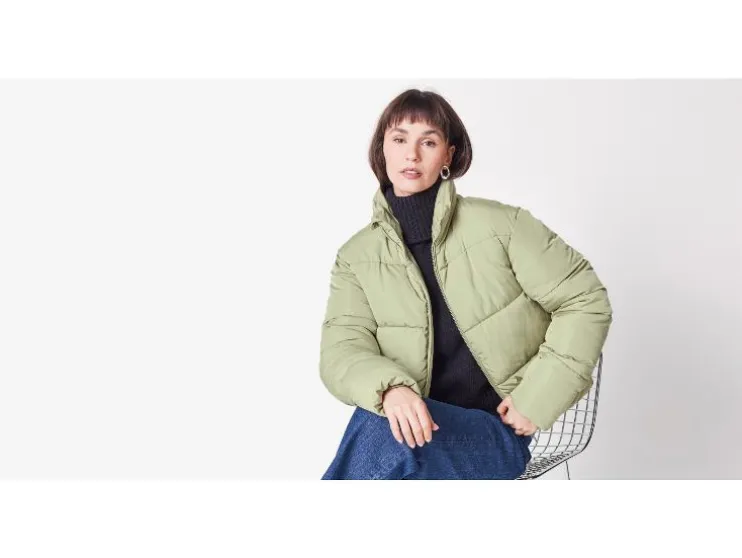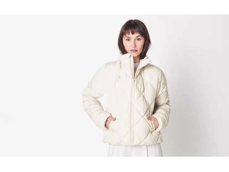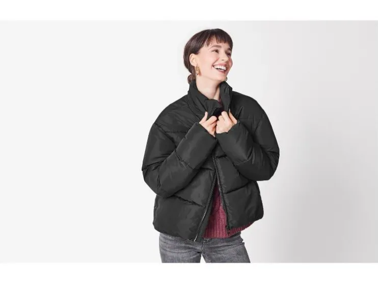 - Met een hoge opstaande kraag, zakken en doorlopende rits met kinbescherming