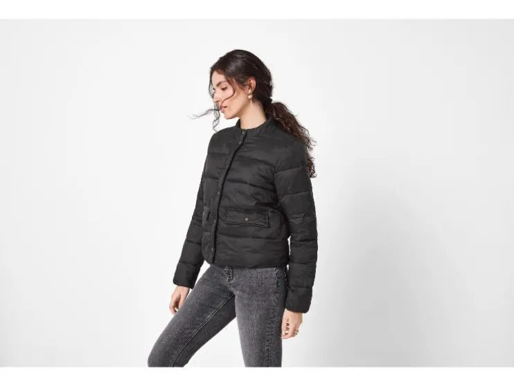 - Met opstaande kraag, knoopsluiting en steekzakken