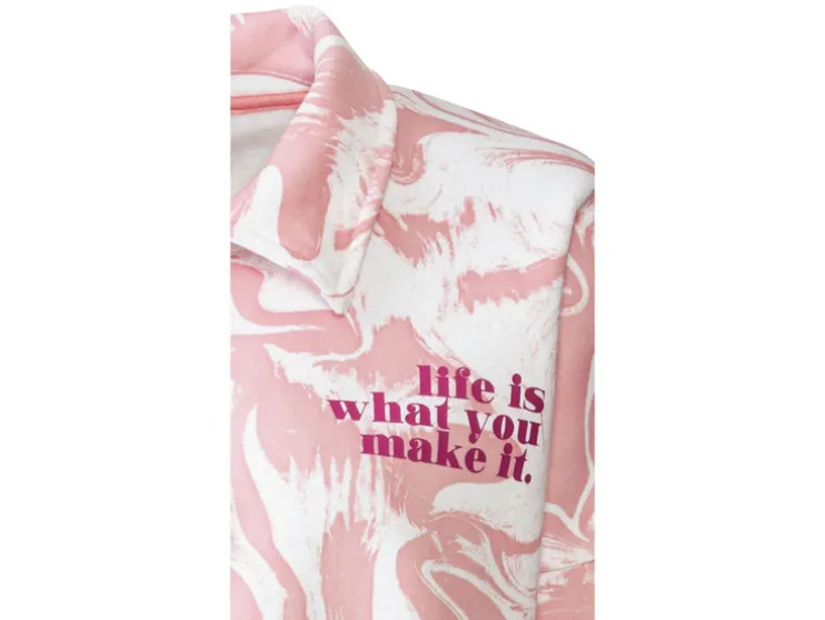 - Met print op de borst
