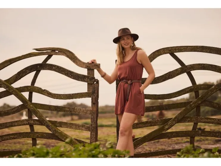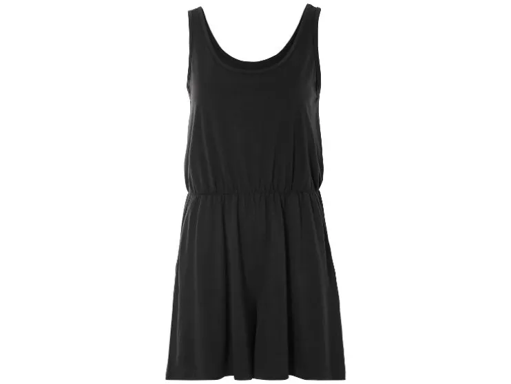 - Ronde halslijn, brede schouderbandjes en steekzakken