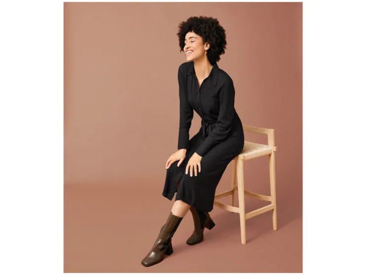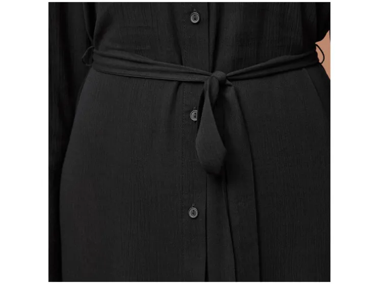 | Detail: | Koord in de taille, crêpe-structuur, doorlopende knopenrand, knoopmanchetten |