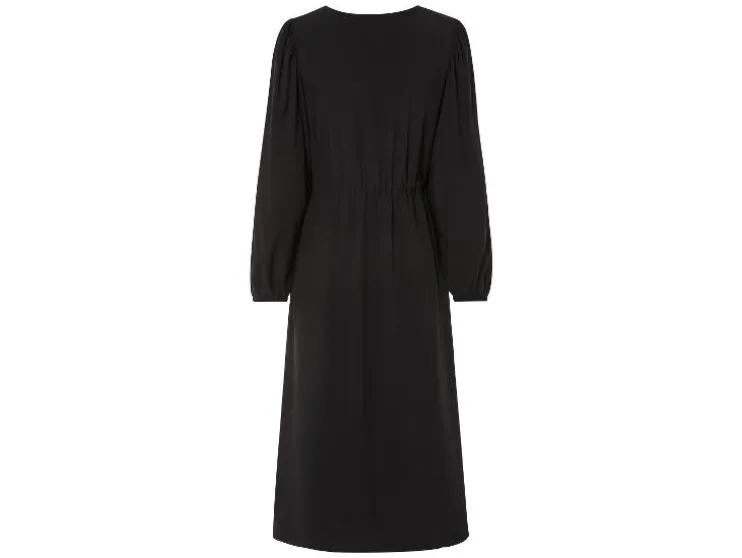 | Detail: | bordeaux/zand: knoopjes achterop gerimpelde elastische tailleband en mouwen volants aan de zoom zwart: lange ballonmouwen met elastische tailleband met strikband in de taille |