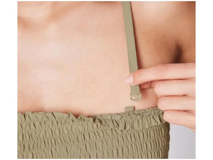 - Met verstelbare, afneembare spaghettibandjes en gerimpelde borst