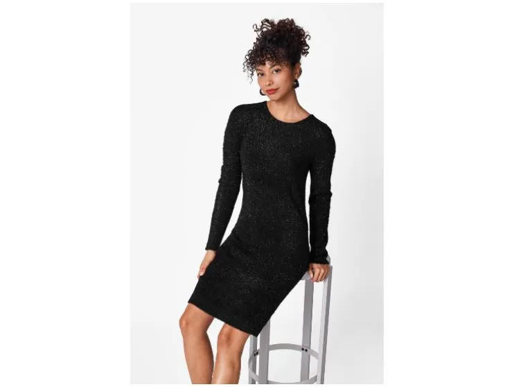 - Deze jurk heeft een elegant glittereffect, ideaal voor een feestje of een glamoureuze outfit