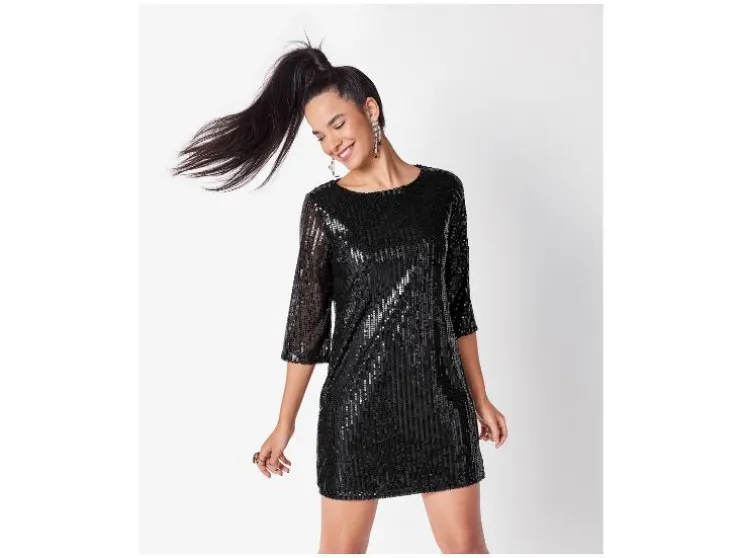 - Deze jurk is versierd met pailletten, ideaal voor een feestje of een glamoureuze look!