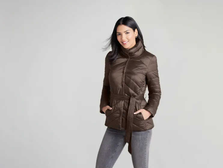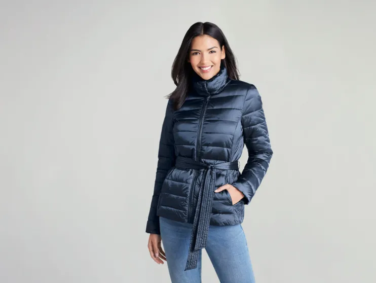 - Met hoge opstaande kraag en doorlopende ritssluiting