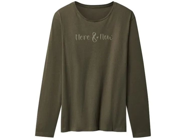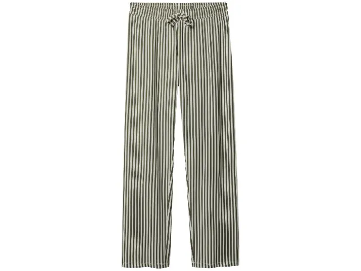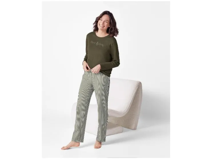 - Olijfgroen: Shirt met oversized schouders en print, broek met comfortabele elastische tailleband en trekkoord