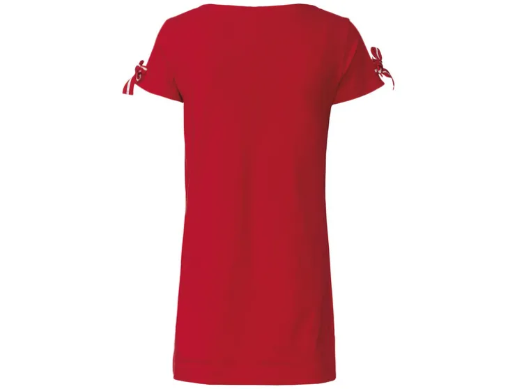 - Rood: met ronde hals en modieuze sierbandjes aan de mouwafsluiting
