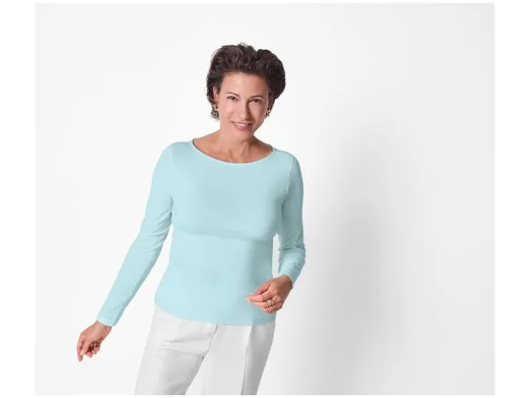 - Dit shirt met lange mouwen heeft een boothals
