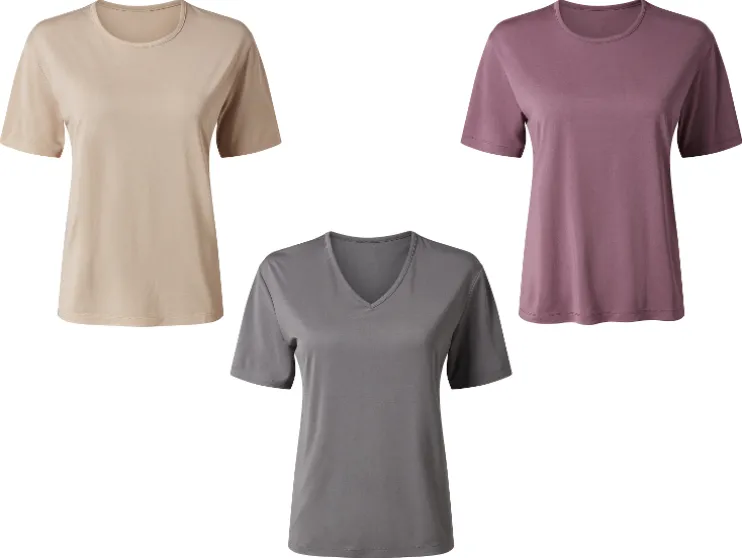 | Halslijn: | grijs: V-hals beige; donkerroze: ronde hals |