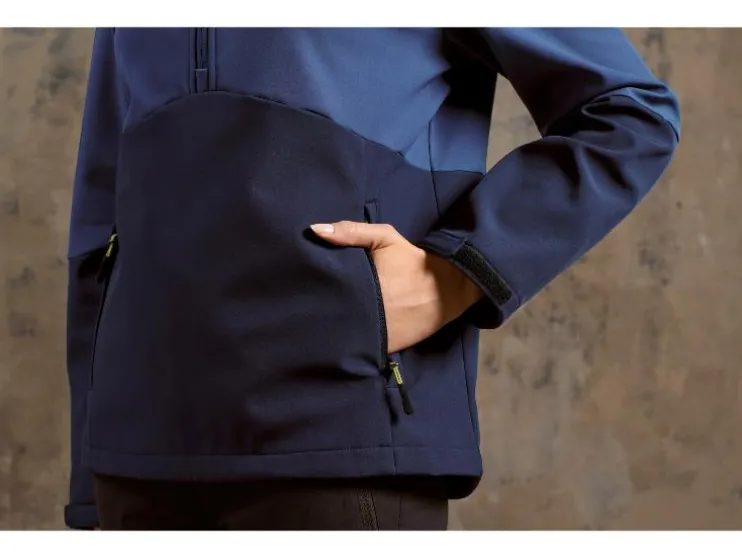 - Van winddichte, ademende 3-laags softshell-materiaal met hoge warmteteruggave