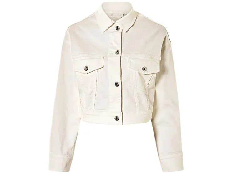 | Detail: | in Cropped-lengte, oversized schouders, doorlopende knoopsluiting, opgezette borstzakken met knoopsluiting, sierrits op de achterkant |