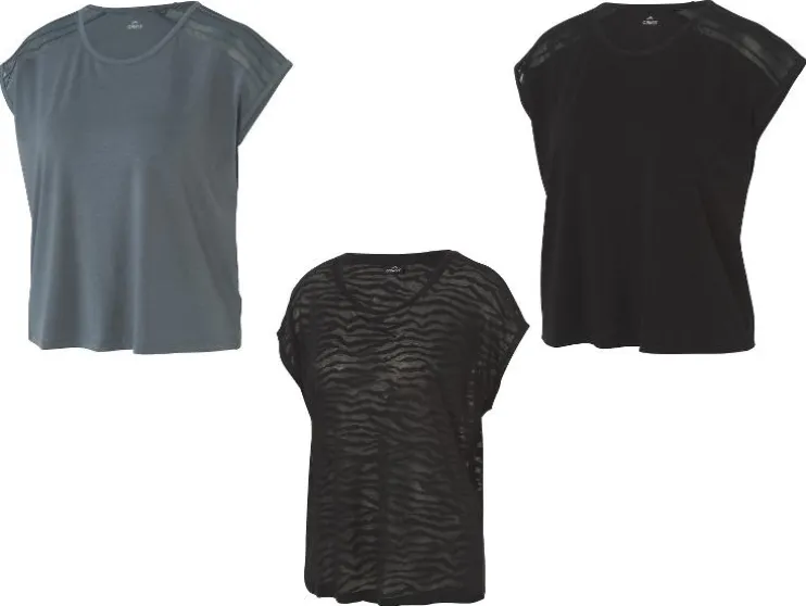 | Materiaal: | blauw, zwart: Buitenmateriaal: 64 % polyester (gerecycled), 33 % viscose (LENZING™ ECOVERO™), 3 % elastaan (LYCRA®); Schouderstuk: 89 % polyester, 11 % elastaan (LYCRA®) zwart met print: 54 % viscose (LENZING™ ECOVERO™), 46 % polyester (gerecycled) |
