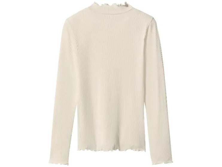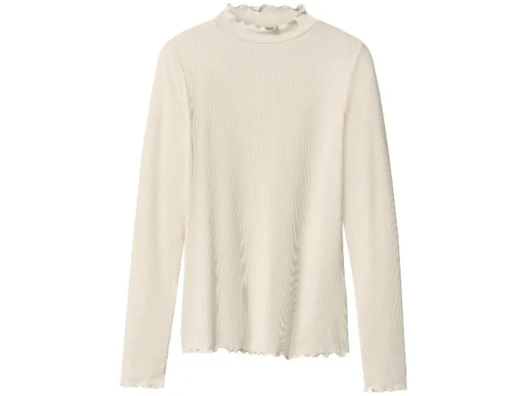 - Gekrulde rand aan kraag, mouwen en zoom